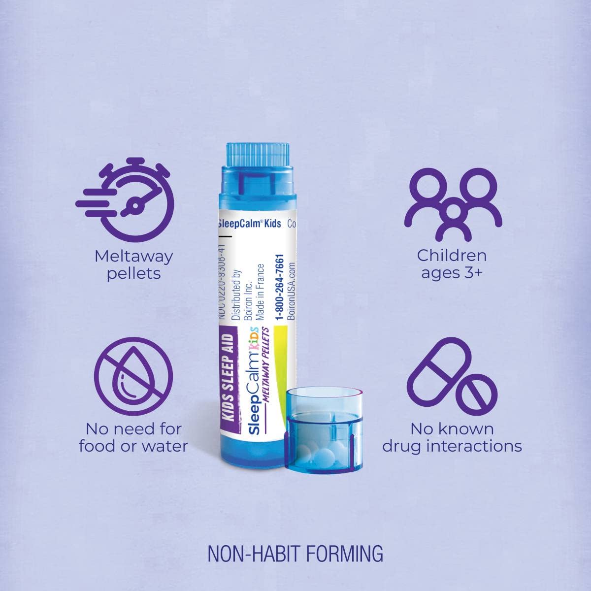 - GENTLE, MELATONIN-FREE KIDS’ SLEEP RELIEF: SleepCalm Kids Meltaway Pellets by Boiron provide a gentle, melatonin-free option to relieve occasional sleeplessness, restless sleep, nightmares, and night terrors, so kids can fall asleep and stay asleep.* Ideal for ages 3 and up.